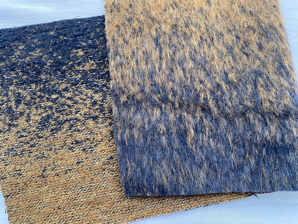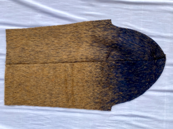 So, jetzt mal ein paar Worte zum Stoff. So ein handelsüblicher flauschiger „fake fur“ mit langen Haaren und gestrickter Rückseite ist er ja nicht. Kein Angorakaninchen, eher Typ Feldhase mit kurzen Haaren und eindeutiger Strichrichtung. Wahrscheinlich ist Wollflausch die richtigere Bezeichnung. Der Stoff ließ sich problemlos mit der Schere zuschneiden! Und die Probe an einem Reststück ergab: er lässt sich sogar bügeln, ohne platt zu werden! Und eine weitere Probe ergab: man kann sogar G785 aufbügeln! Das ist zwar eine ganz leichte Einlage, aber der Unterschied ist spürbar.